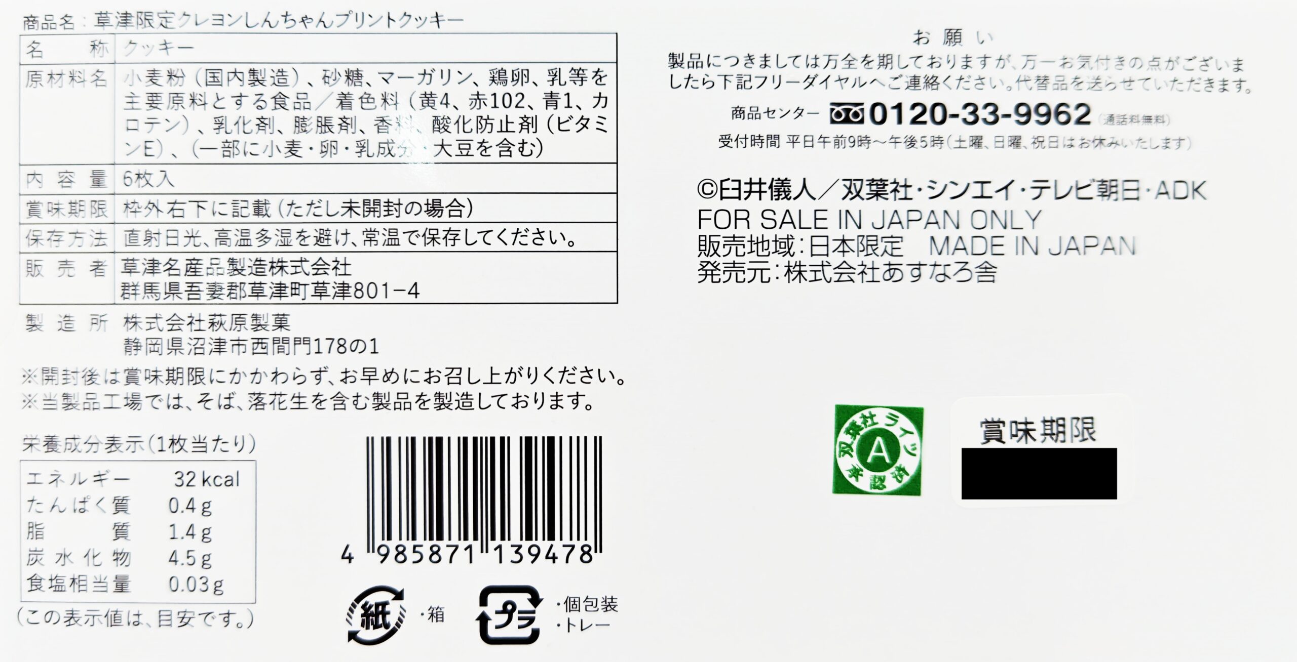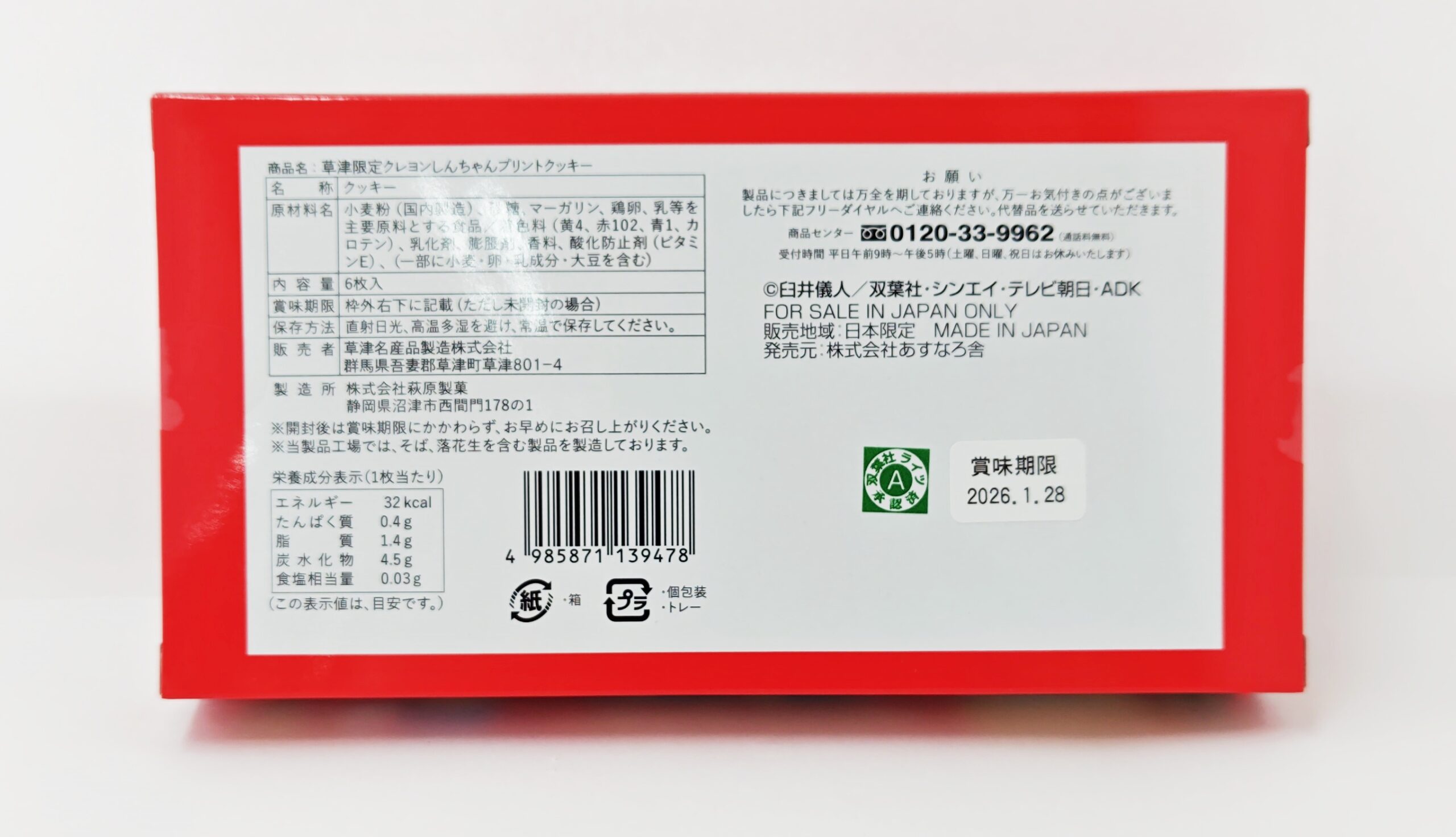 【草津限定】クレヨンしんちゃんプリントクッキー 在庫状態 : 在庫有り ¥540(税込) 数量 【草津限定】クレヨンしんちゃんプリントクッキー (y-sinchan-printcookie) クレヨンしんちゃんのパッケージデザインのプリントクッキーです。 お手頃で買いやすい値段。